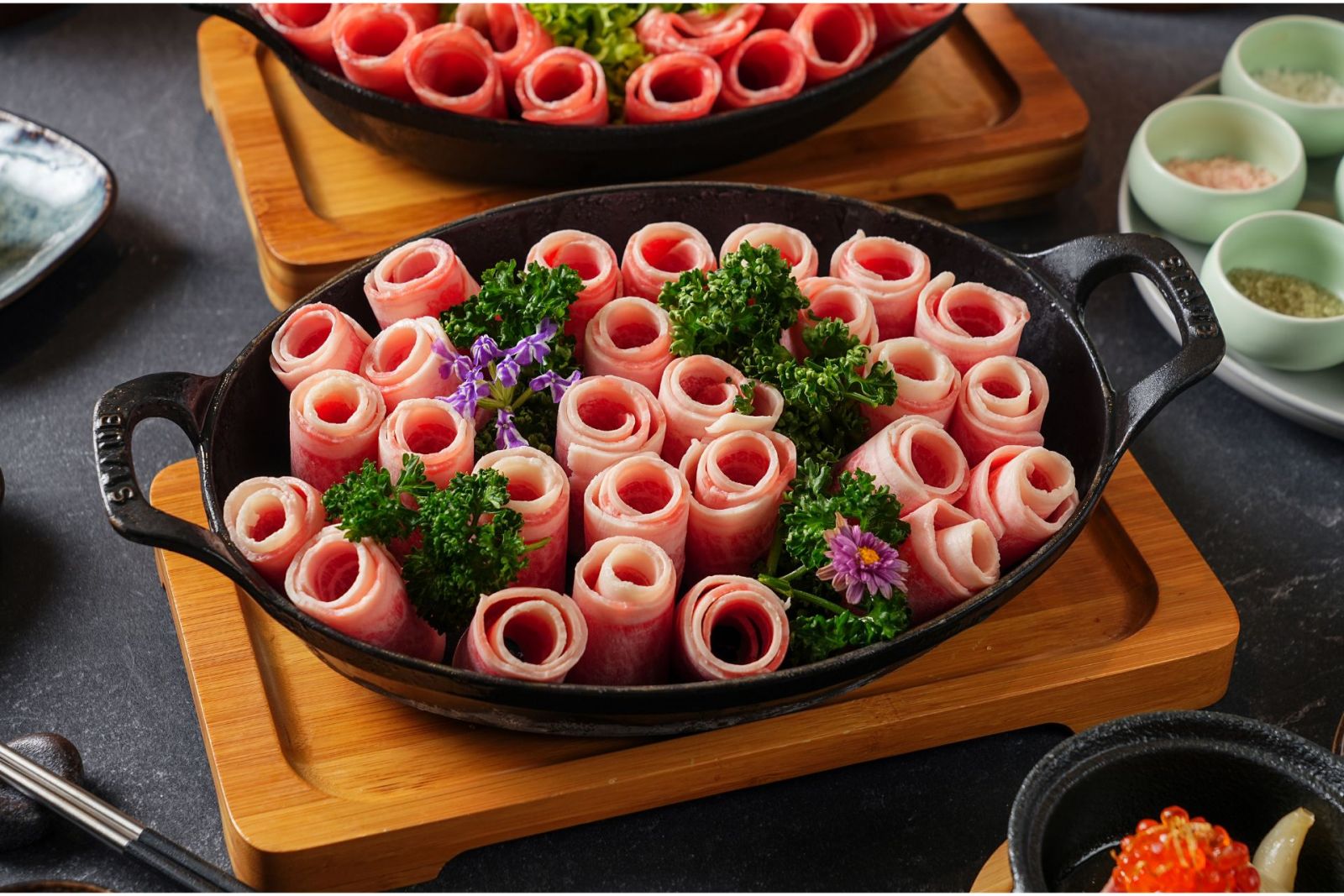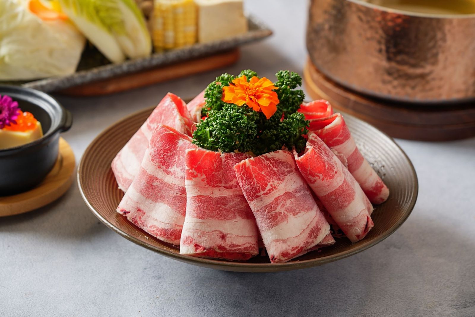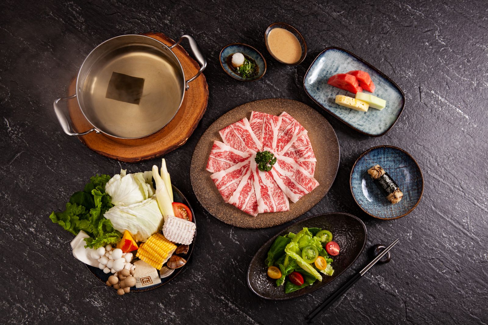 餐廳獨家使用A CUT精選小田和牛,來自鹿兒島風味,運用獨家12種飼料(包含酒釀、大豆、麥粉等),加上優越的成長環境,健康的飼養方式,成就多次鹿兒島金賞頭銜,牛肉油花分佈出眾,輕涮入口,體驗和牛入口即化的感動。