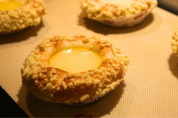 傳統法國麵包上在送入烤箱前,塗上帶有滿滿於軟顆粒的特質明太子醬,充滿日式風味與西式麵包搭配,外脆內軟 ...