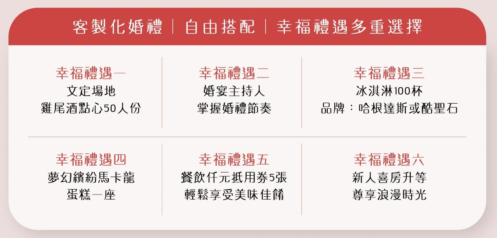 預約幸福中式婚宴專案,享婚宴自由配六選三