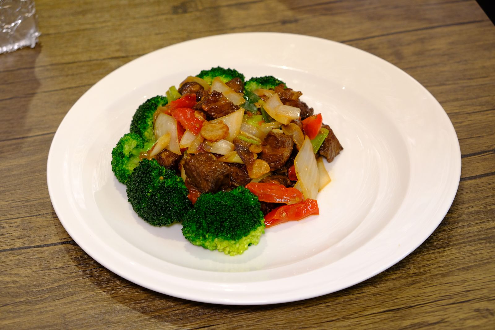 揉合經典粵式爆炒與頂級食材,安格斯牛在高溫中迅速鎖住肉汁,肉質軟嫩,金黃色蒜片帶來的辛香,讓肉質的鮮美更上層樓,鑊氣十足且層次分明。