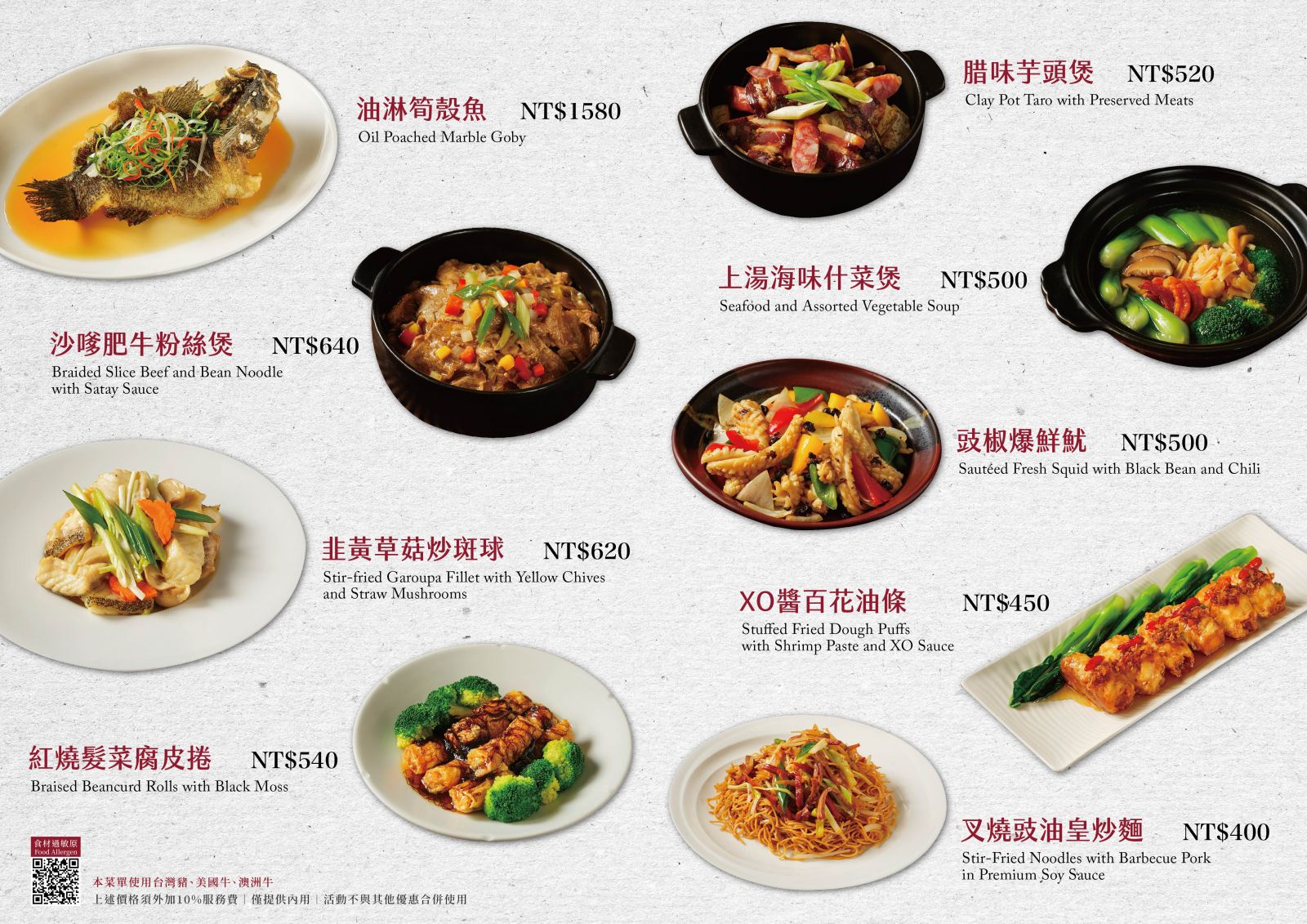- 平假日午晚餐時段,推出9道精選菜色 菜單連結