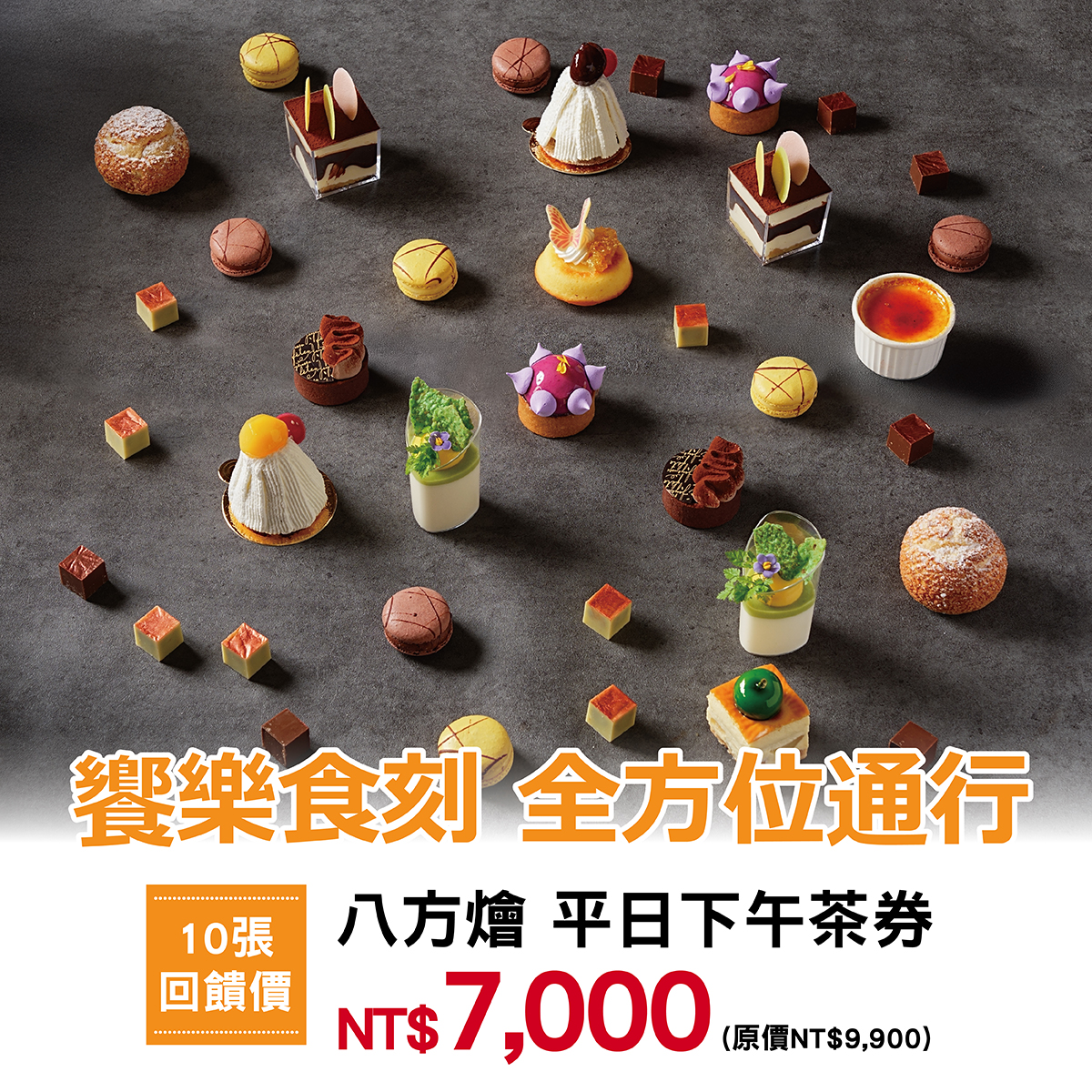 【八方燴平日下午茶優惠餐券】►一套(10張) 7,000元【原價9,900元】,單張券可享加價使用其他餐期更划算!