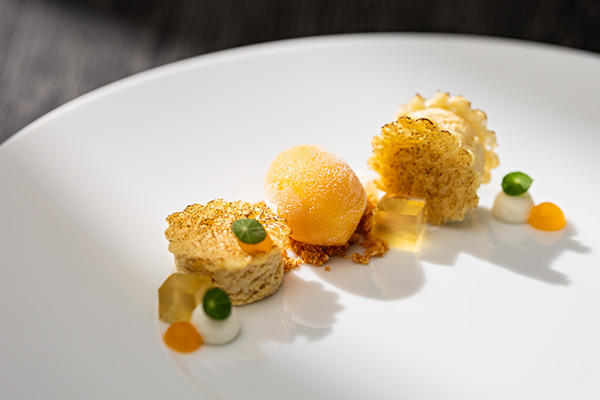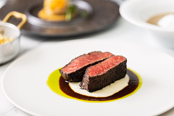 草飼牛脂肪量較少且牛肉風味更加濃郁,經過60天的乾式熟成,最能呈現出「紅寶石老牛」的純淨滋味。入口後這塊夢幻肉品,尾韻帶出的奶油鹹香,經過咀嚼,唾液分泌出奶香濃郁、層次豐富的風味,雖然是10歲的老牛,但肉質卻更加柔嫩,滋味純淨無多餘雜味。