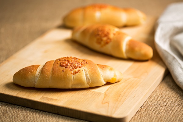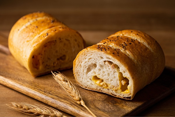 *葷食 傳統法國麵包上在送入烤箱前,塗上帶有滿滿魚卵顆粒的特質明太子醬,充滿日式風味與西式麵包搭配, ...