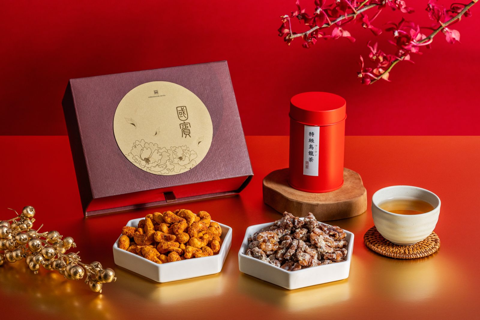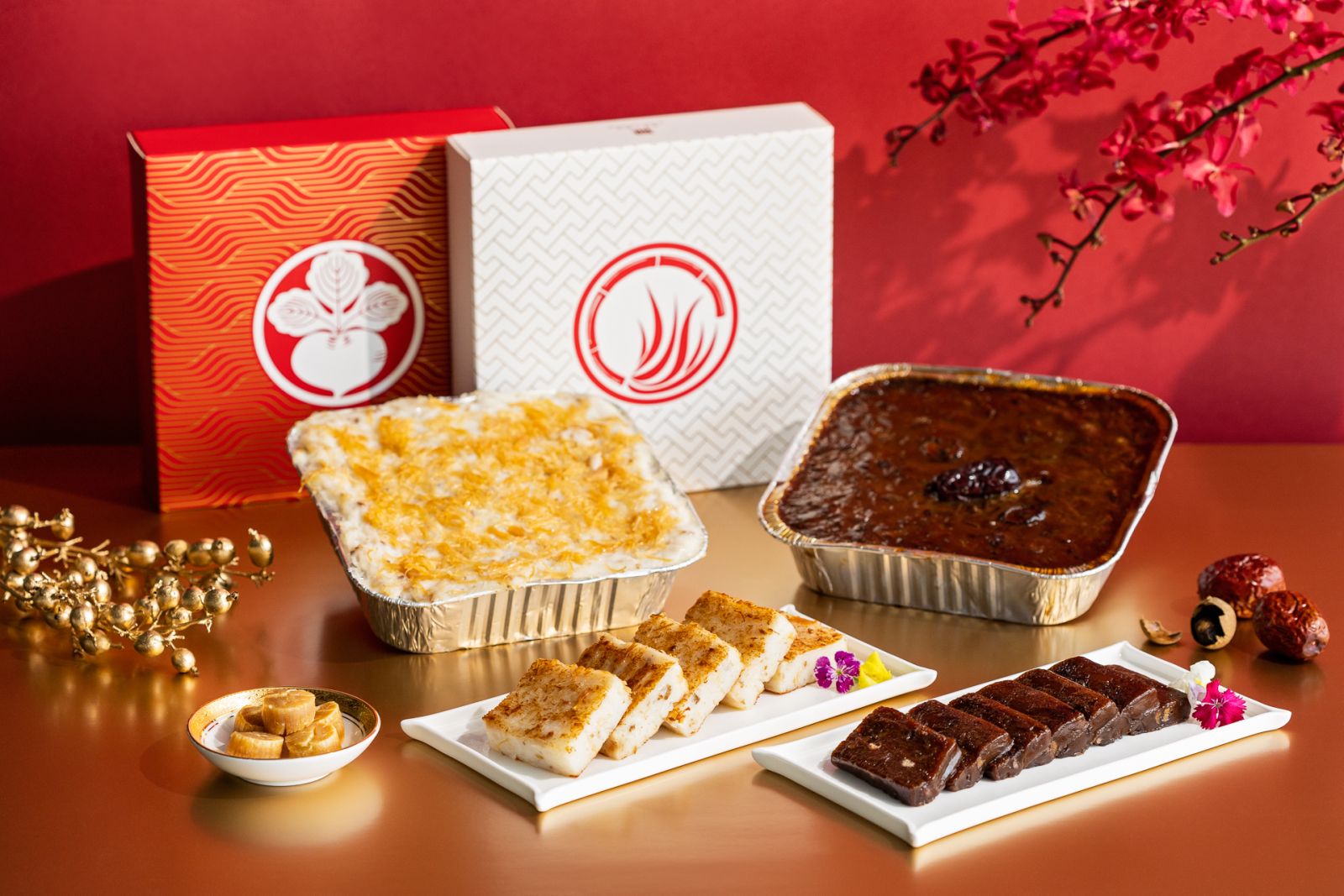 包含「干貝好彩頭」以大量蘿蔔絲純手工製作而成,絲絲鮮甜的白蘿蔔清爽脆口,以干貝、黑豬肉香腸及蝦米增添風味,煎至表面酥香後的蘿蔔糕內層綿密細緻,口齒間清香餘味久久不散;「紅棗桂圓黑糖年糕」融合紅棗、黑糖、桂圓肉、萬丹蜜紅豆及桂花醬,蒸1.5小時而成,可炸至金黃焦脆、或以蒸的方式品嚐原味,桂圓、黑糖、紅豆、與桂花四種不同層次香氣於味蕾迴盪。
