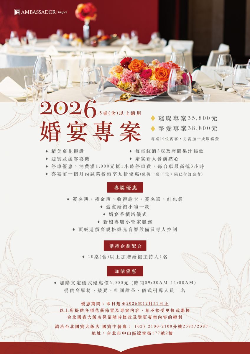 訂位電話:02-2536-2370或02-2100-2100分機2383或2385